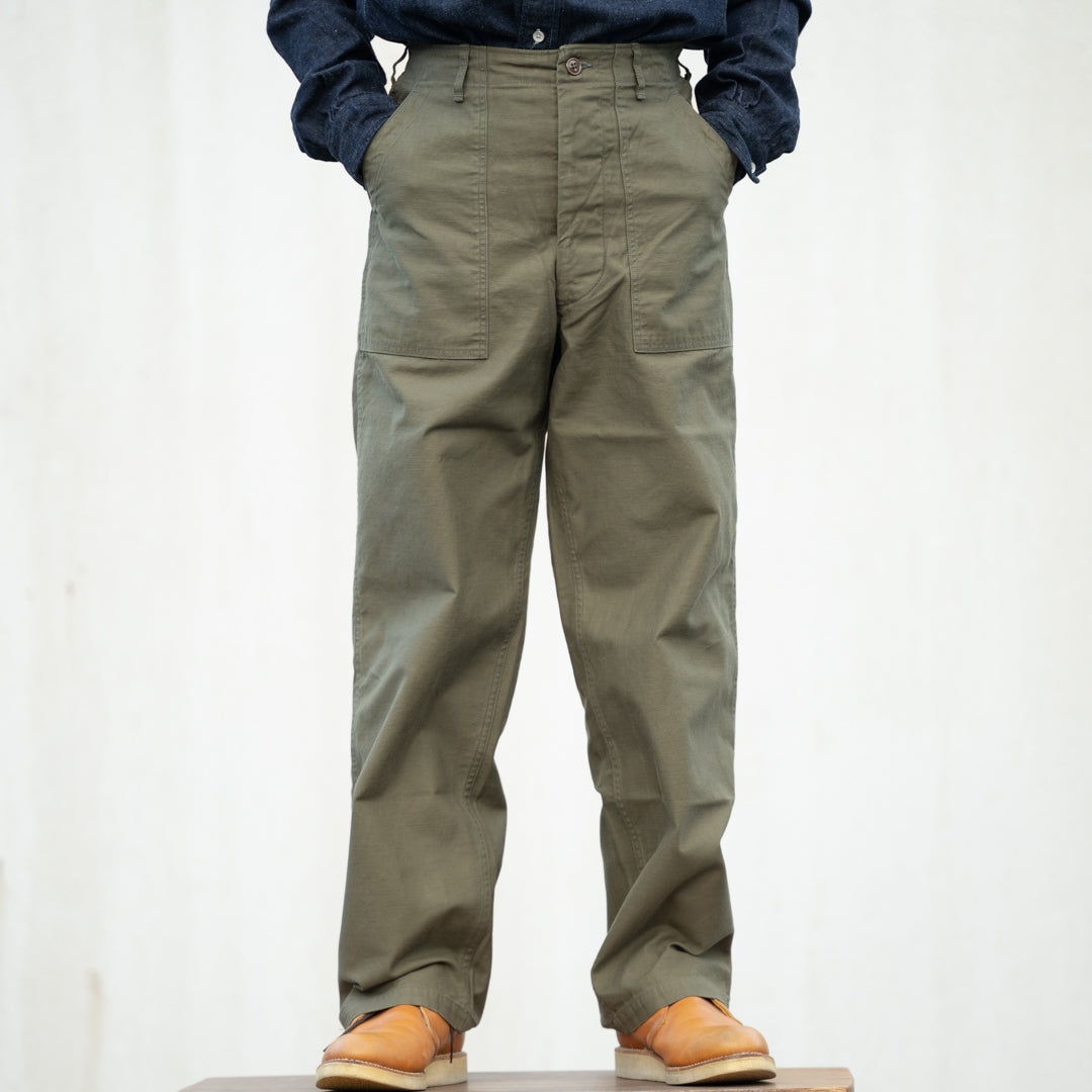シンチバックのシルエットは「66」と「XX」の中間程度。また、シンチバック部分には40's以前にみられる針刺しタイプをオリジナルロゴ入りで制作しました。トップをつぶすタイプの銅製打ち抜きリベットや股部分のクロッチリベットなど、このモデルならではのディテールも豊富です。