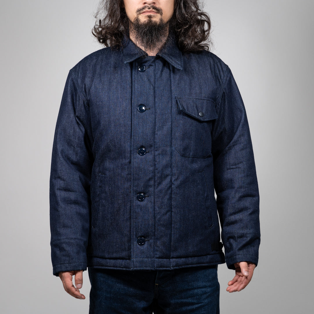 A-2 Jacket Quilted Wool Denim indigoもともとアメリカ海軍で、甲板上での作業に従事する兵士たちのために用いられていたデッキジャケット。BONCOURAでは、そのA-2タイプをベースに、独自の視点で再構築しました。