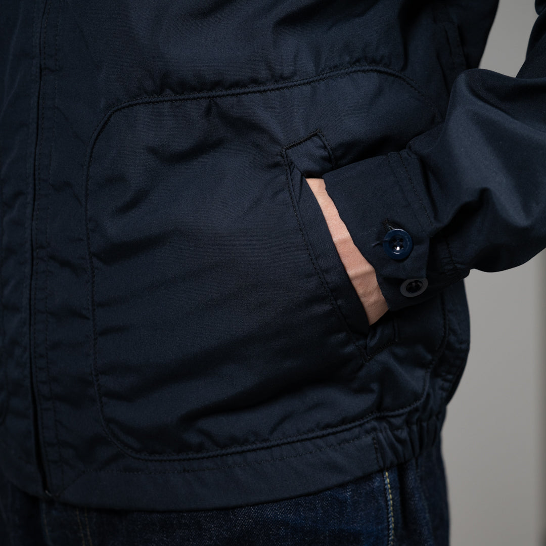 Weather Jacket navy1940年代に広まったスポーツジャケットに着想を得た一着。フロントジップのショート丈をベースに、軽快さと実用性を備えています。